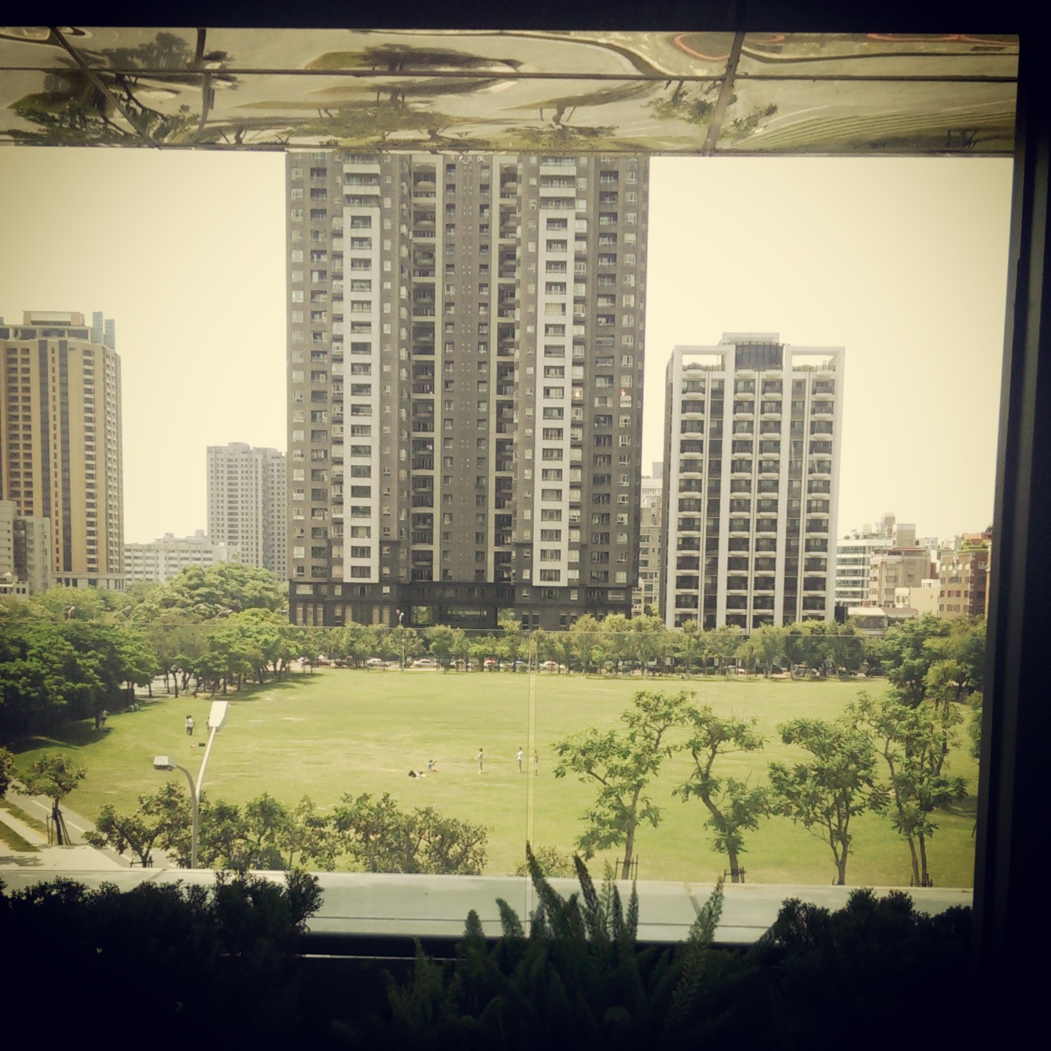 入內之後就是一片落地窗正對著台中市民廣場,一大早就可以在都市中看到綠油油的草地